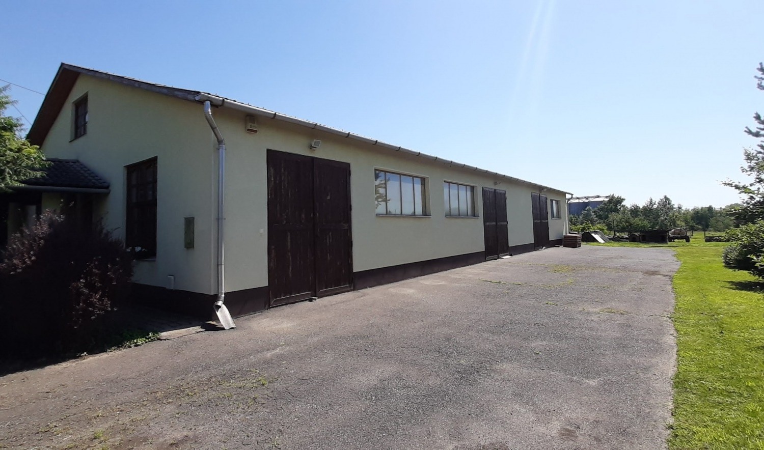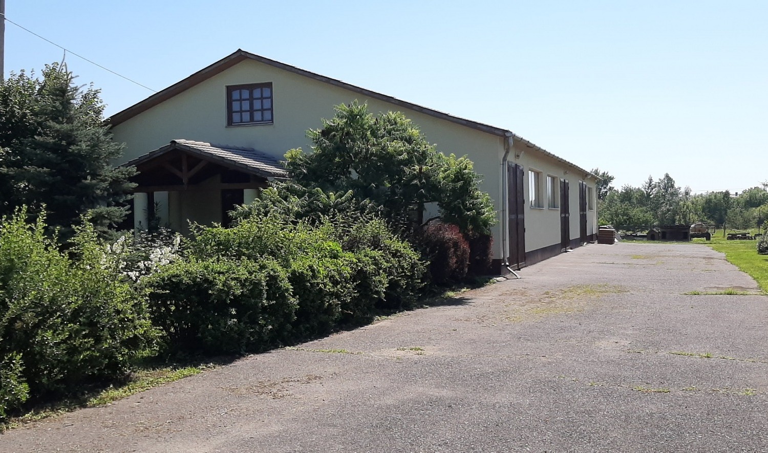 Tartozik hozzá egy nagy kert udvar a bővítésekhez, van egy gépkocsi beálló, amely traktorok és egyéb mezőgazdasági gépek berendezések kinti tartását teszik lehetővé.