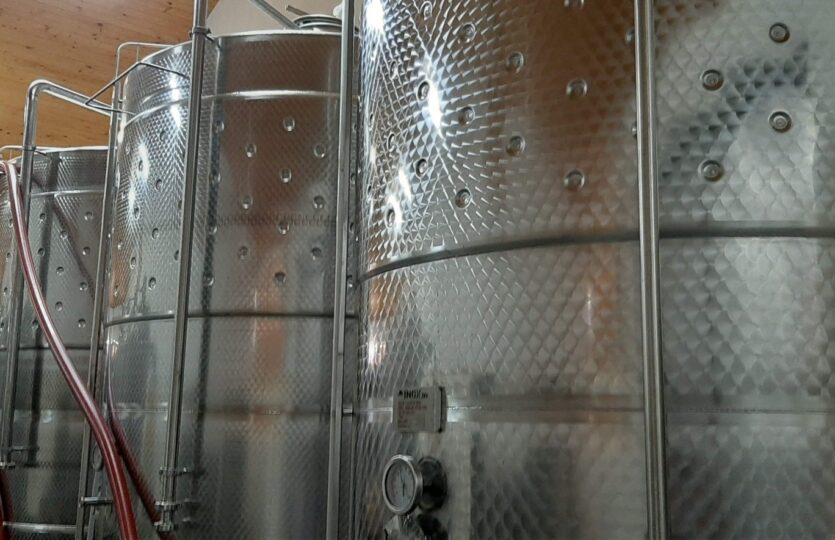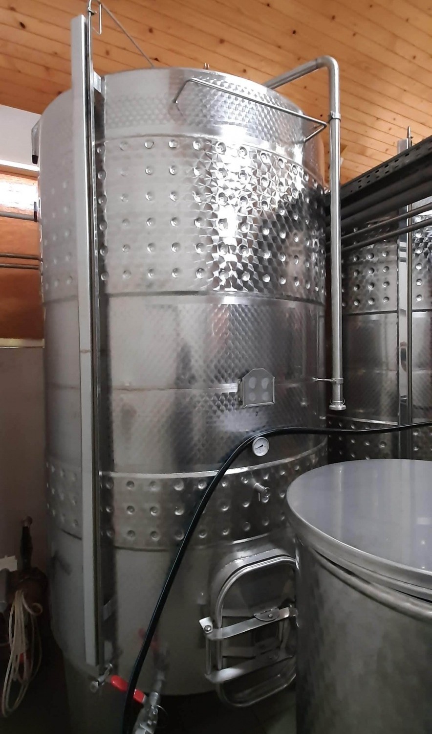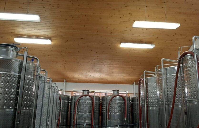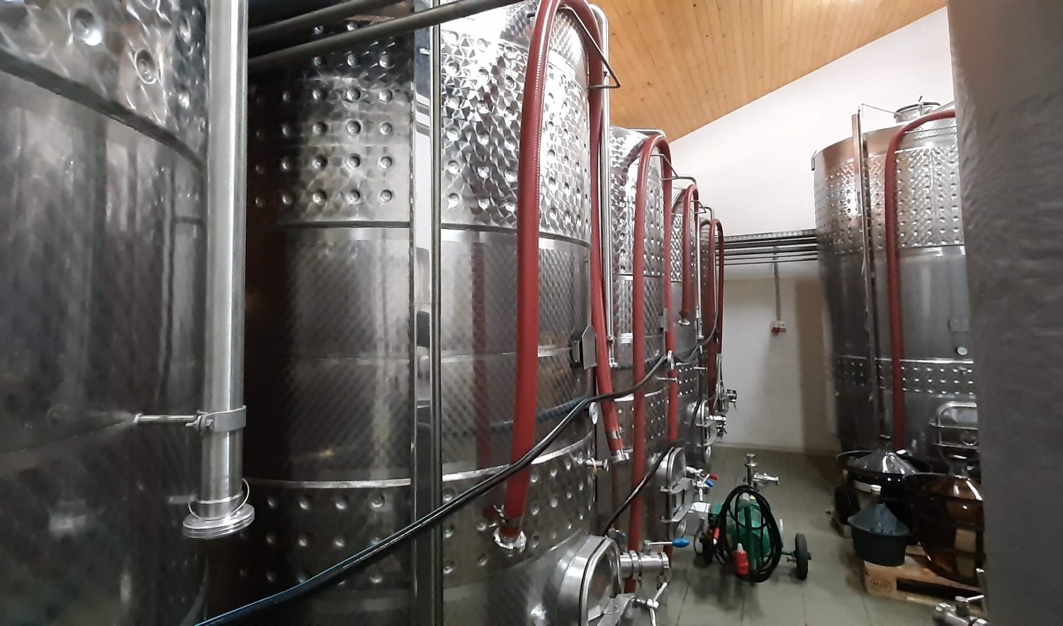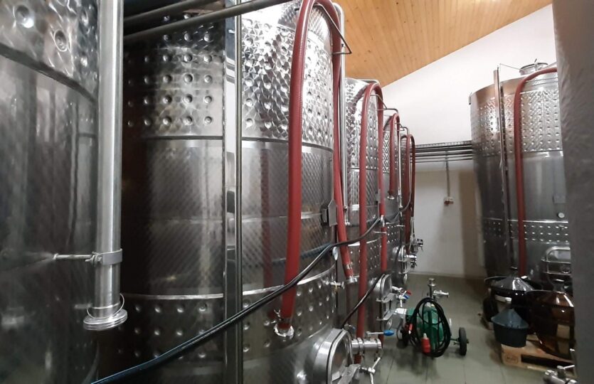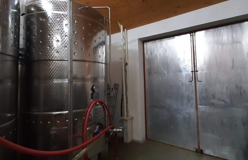 500 hl kapacitású a tároló és kezelő helyiség, amely a reduktív borkészítési eljárásnak megfelelő tartályokkal felszerelt.