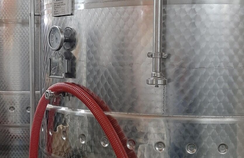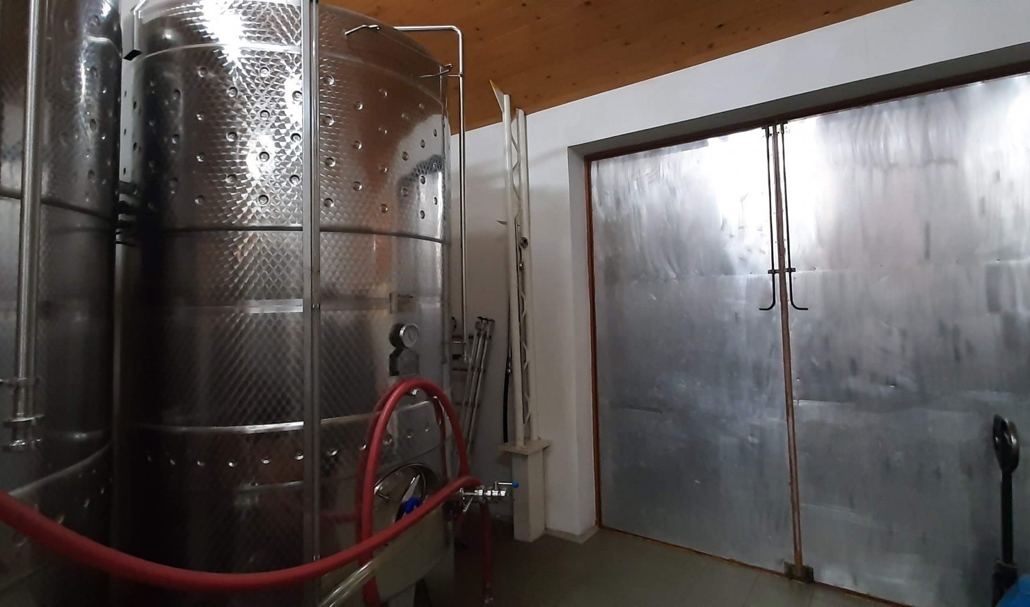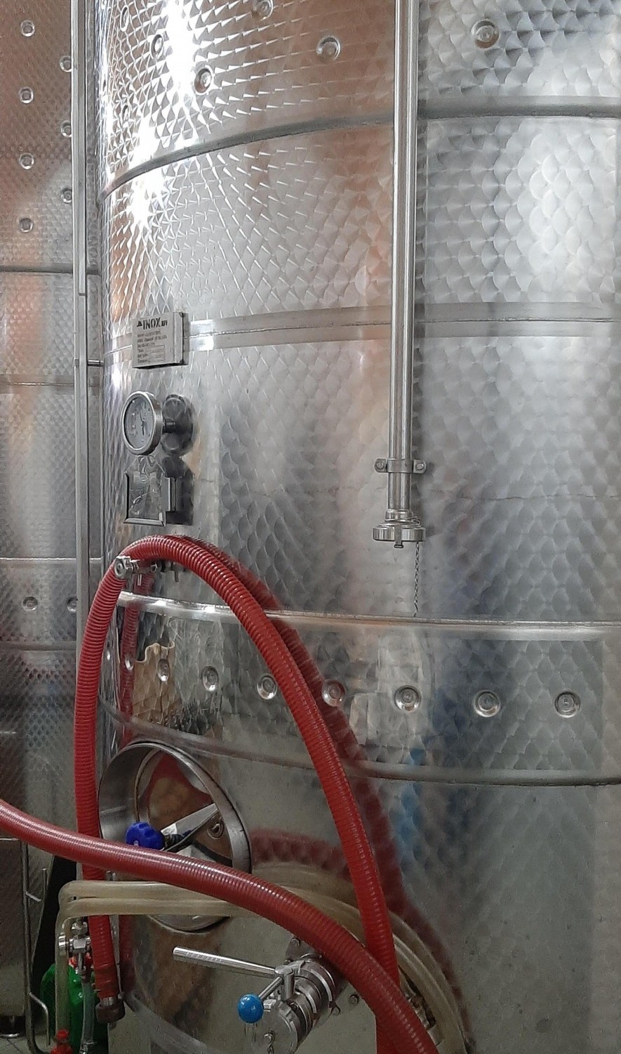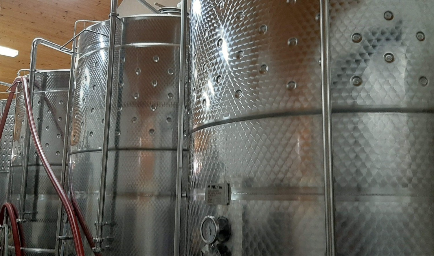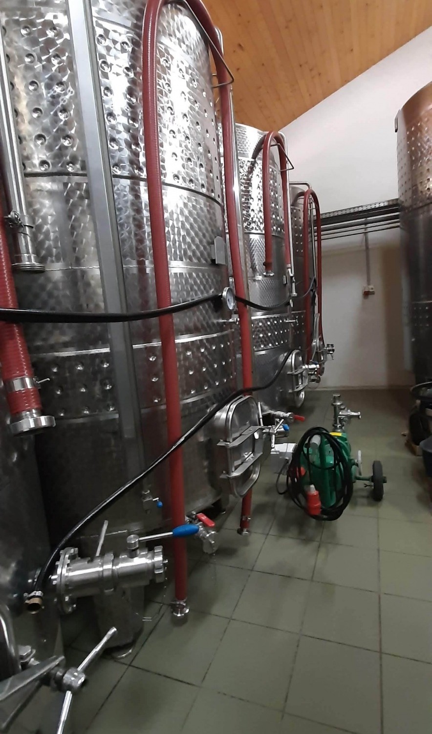 500 hl kapacitású a tároló és kezelő helyiség, amely a reduktív borkészítési eljárásnak megfelelő tartályokkal felszerelt.