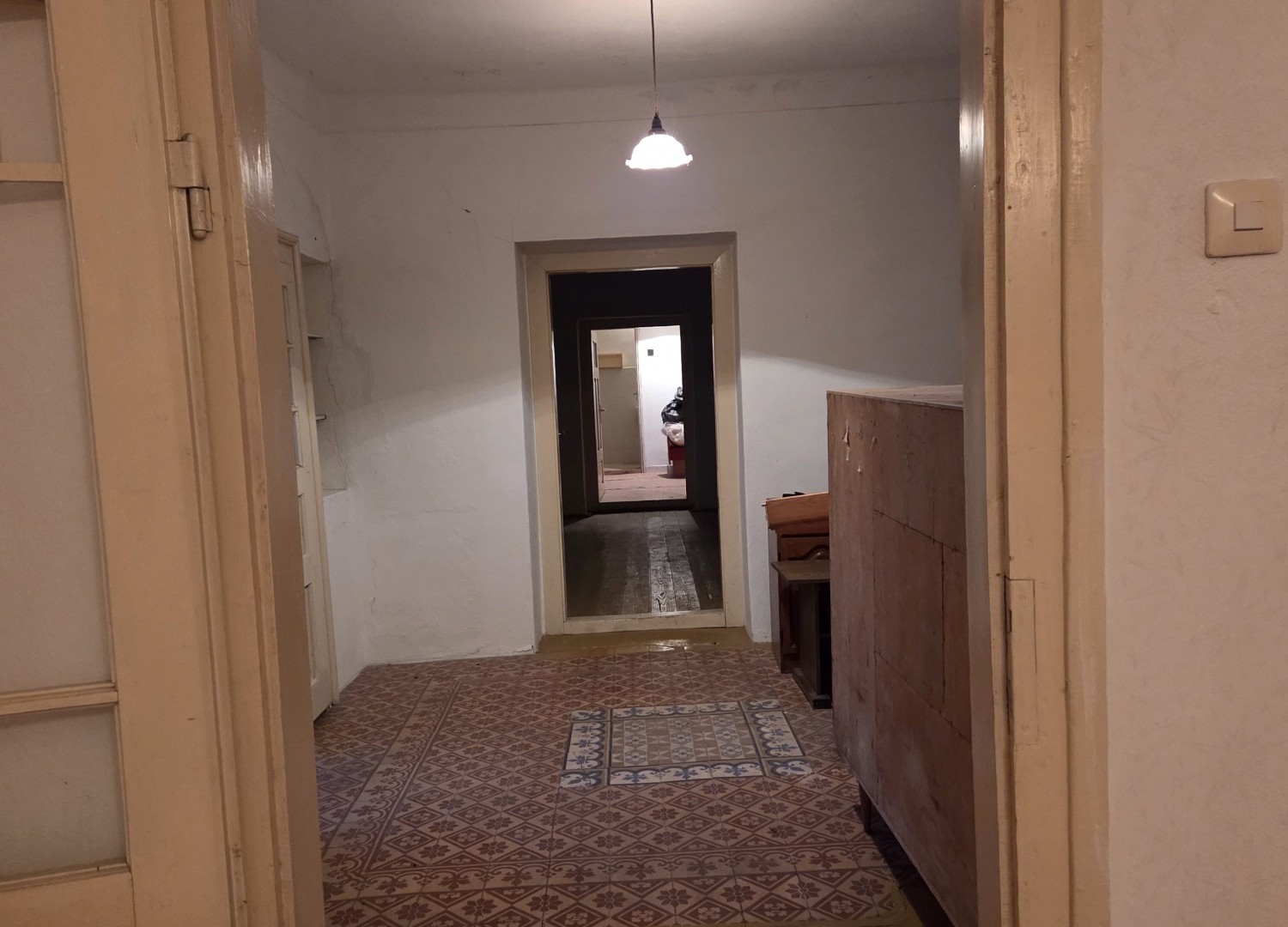A jelenlegi elrendezés praktikus: 2 egész szoba és 1 félszoba kínál kényelmes életteret. A ház azonnal költözhető, a tágas, 28 m²-es tornác/terasz pedig különleges hangulatot ad az ingatlannak.