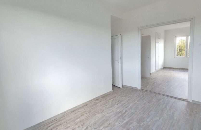 A lakás három külön nyíló szobával rendelkezik, melyek kelet–nyugati tájolásuknak köszönhetően egész nap természetes fényben fürdenek. A világos, modern konyhából közvetlen kijárat vezet az erkélyre, amely ideális helyszín lehet egy nyugodt reggelihez vagy délutáni pihenéshez. A beépített gardróbszekrények praktikus tárolási lehetőséget kínálnak, segítve a rendezett, letisztult élettér kialakítását.