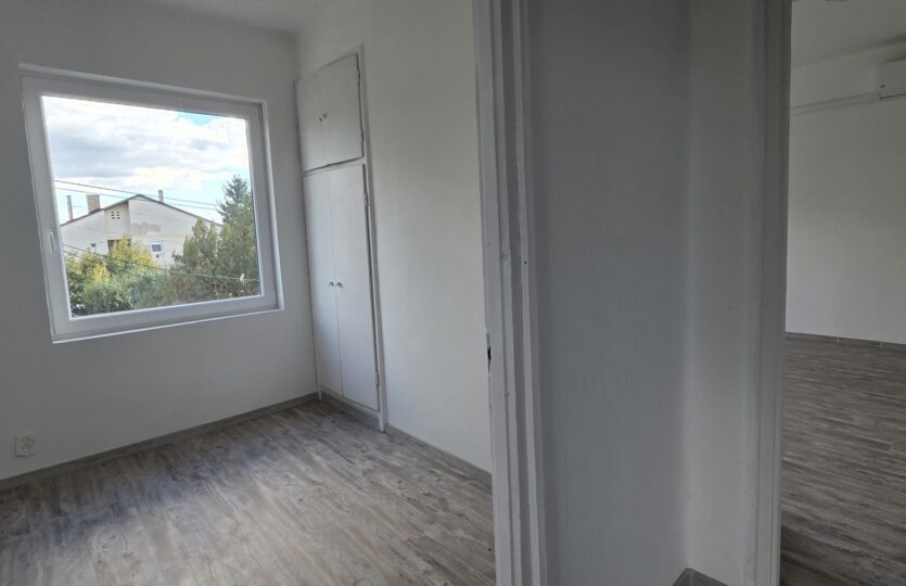 A lakás fűtéséről energiatakarékos légkondicionáló gondoskodik, ugyanakkor a meglévő kémény lehetőséget biztosít alternatív fűtési módok – például kandalló vagy cserépkályha – kialakítására. A felújítás során minden részletre figyeltek: új, hő- és hangszigetelt műanyag nyílászárók kerültek beépítésre, a szobákban laminált padló, a konyhában pedig esztétikus, könnyen tisztítható burkolat kapott helyet.