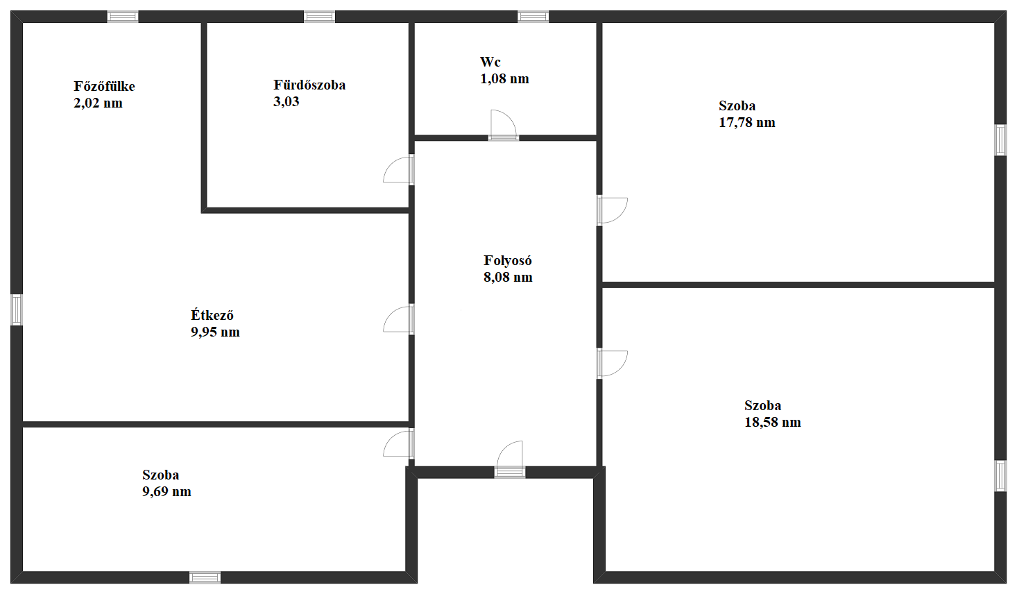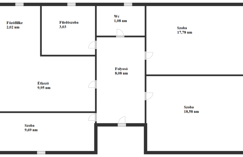 Szoba: 18,58 nm